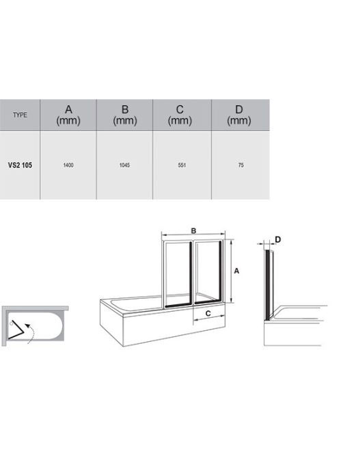 Ravak VS2 kádparaván 1045x1400 mm (fehér-grape) 796M0100ZG -