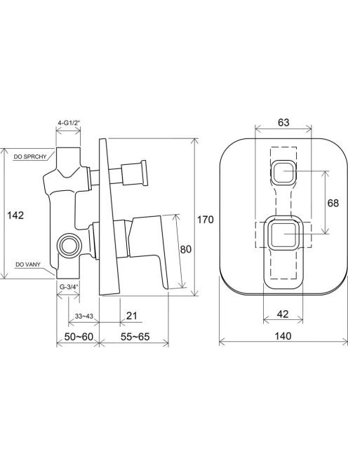 Ravak 10° TD 061.00 falba süllyesztett csaptelep váltóval, b