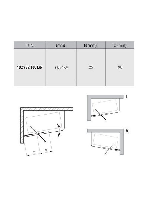 Ravak 10CVS2-100 jobbos kádparaván (fehér-transparent) 7QRA0