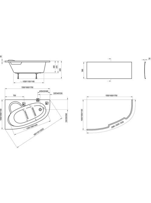Ravak Asymmetric 160 x 105 bal akrilkád (hófehér) C461000000Ravak Asymmetric 160 x 105 bal akrilkád (hófehér) C461000000