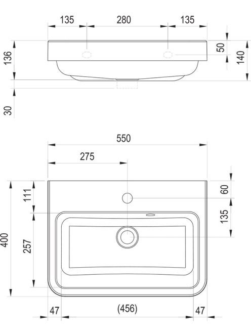 Ravak BeHappy II 550 mosdó furattal XJA01155000 - FürdőszobaRavak BeHappy II 550 mosdó furattal XJA01155000 - Fürdőszoba