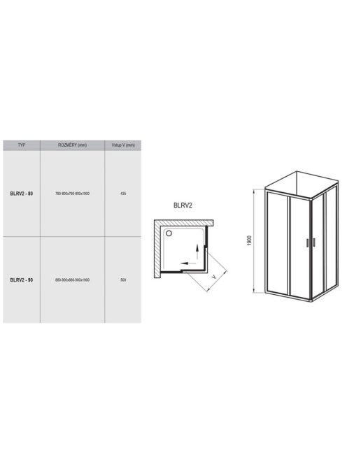 Ravak Blix BLRV2-90 sarokbelépős zuhanykabin (króm+Transpare