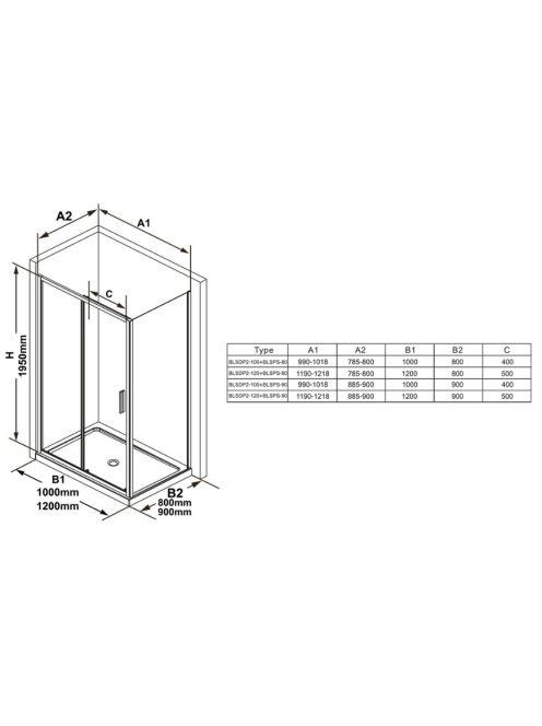 Ravak Blix Slim BLSPS-90 fix oldalfal (fekete+Transparent) X