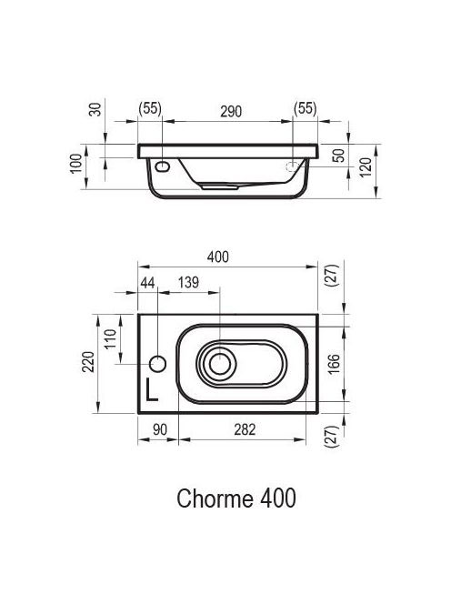 Ravak Chrome kézmosó balos (fehér), furattal XJGL1100000 - F