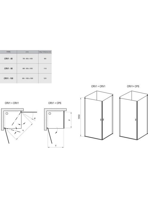 Ravak Chrome CRV1-90 zuhanykabin szatén-Transparent 1QV70U01