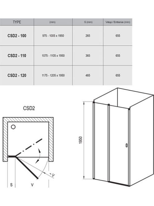Ravak Chrome CSD2-100 zuhanyajtó (fényes alumínium-transpare