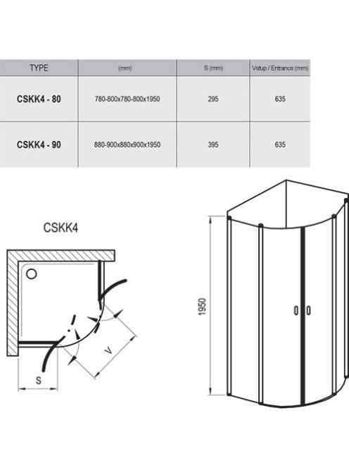 Ravak Chrome CSKK4-80 zuhanykabin (fehér-transparent) 3Q1401
