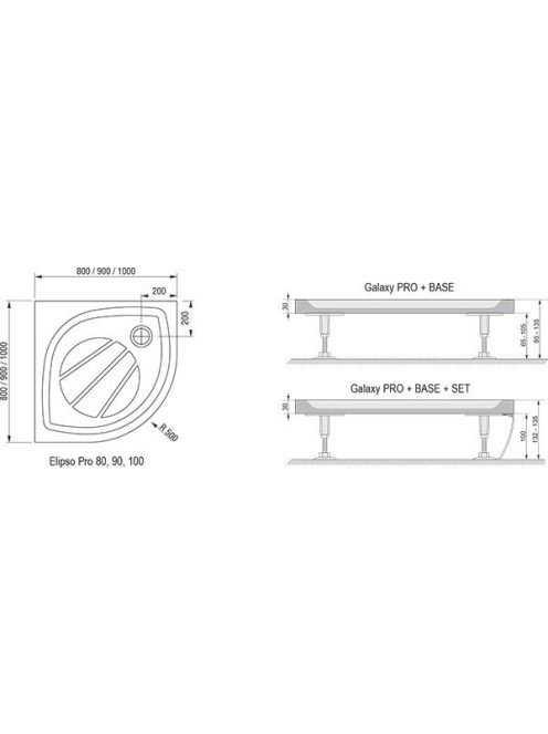 Ravak Elipso Pro 80 íves zuhanytálca (fehér) XA234401010 - F