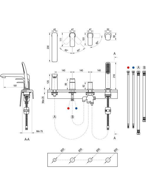 Ravak FL 026.20 Kádperemre csaptelep szett, matt fekete X070