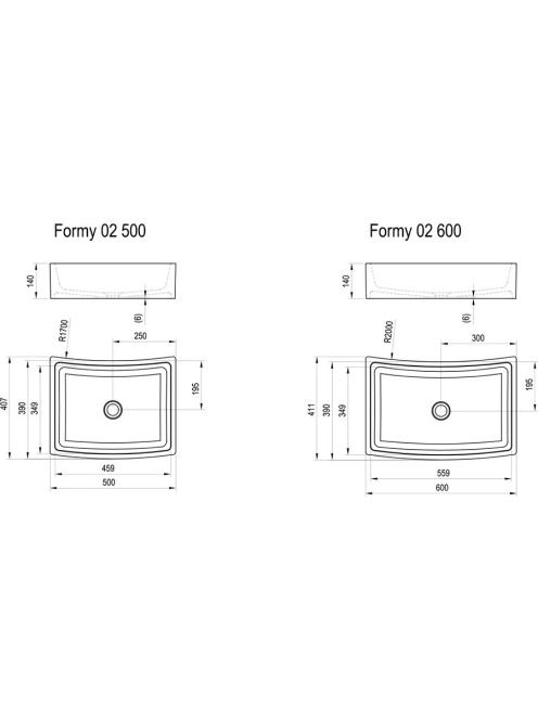 Ravak FORMY 02 600 D mosdó túlfolyó nélkül, fehér XJM0126000