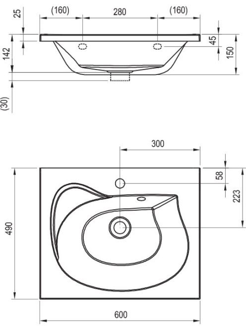 Ravak Rosa 600 mosdó fehér, nyílással XJ201160000 - Fürdőszo