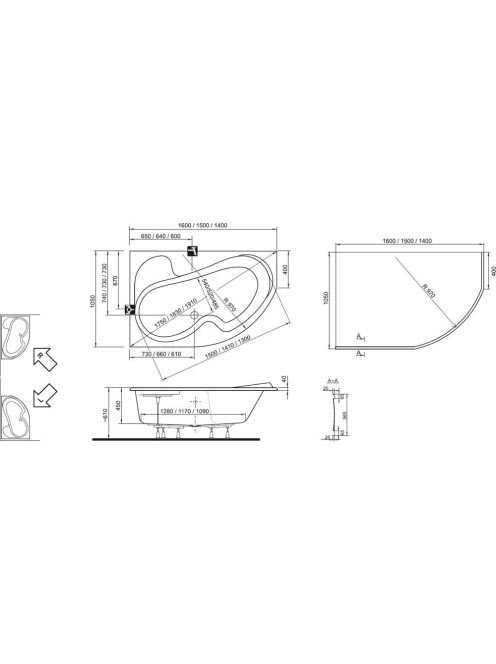 Ravak Rosa I 140 x 105 bal akrilkád (hófehér) CI01000000 - F