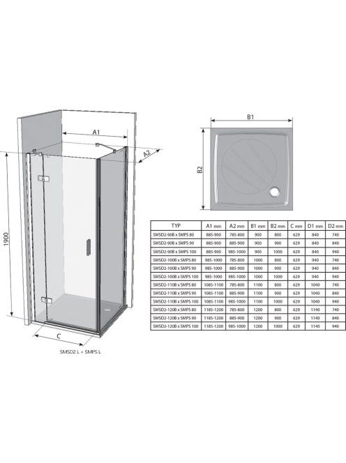 Ravak SmartLine SMPS-90 jobbos zuhanyfal (króm-transparent)