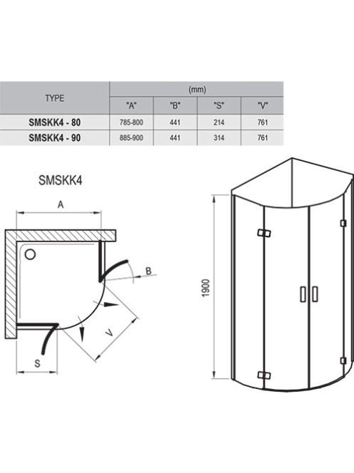 Ravak SmartLine SMSKK4-90 zuhanykabin (króm-transparent) 3S2
