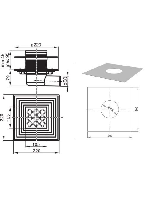 Ravak SN501 padlóösszefolyó 105x105/50 - rozsdamentes acél X