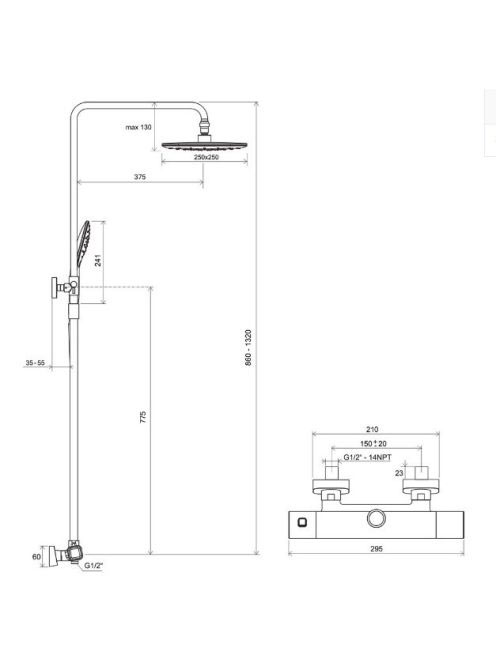 Ravak TD F 091.00/150-10° Free zuhanyoszlop termosztátos csa