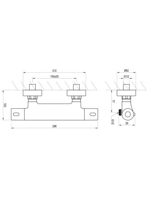 Ravak Termo 300 TE 033.00/150 termosztátos fali zuhanycsapteRavak Termo 300 TE 033.00/150 termosztátos fali zuhanycsapte