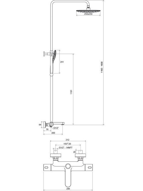 Ravak TE 092.00/150 Termo 300 zuhanyoszlop, termosztátos csa