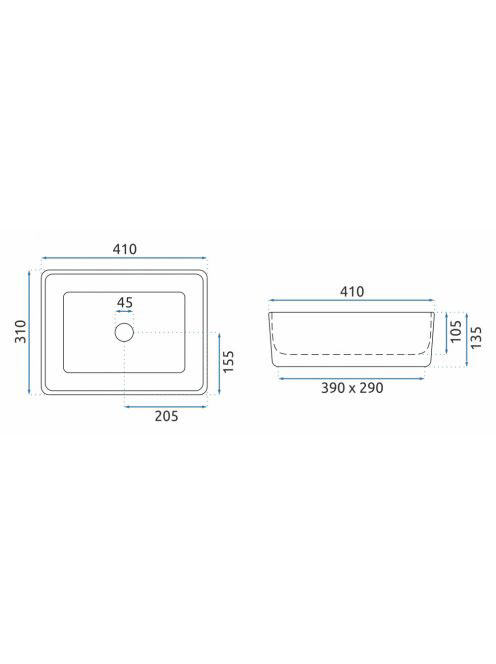 Rea Anita Mini pultra ültethető kerámia mosdótál 41x31 cm, f