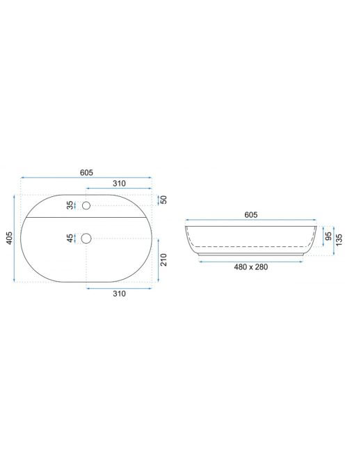 Rea Aura pultra ültethető kerámia mosdótál 60,5x40,5 cm, feh