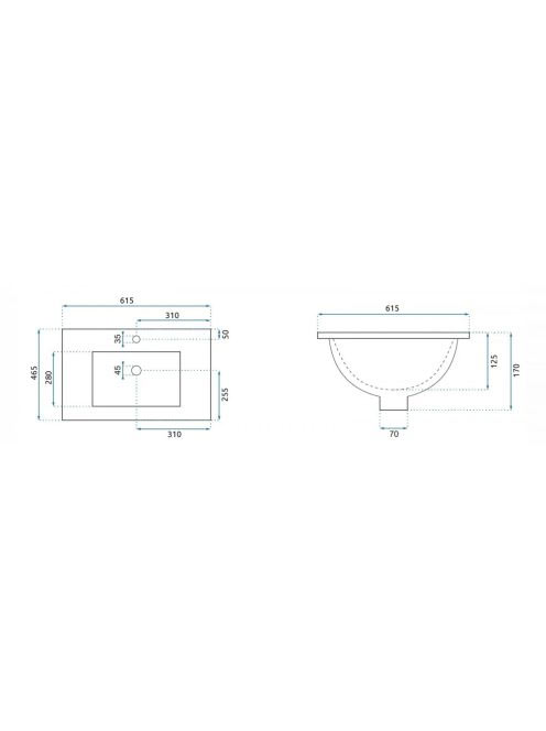Rea Dafne beépíthető kerámia mosdótál 61,5x46,5 cm, fehér RE