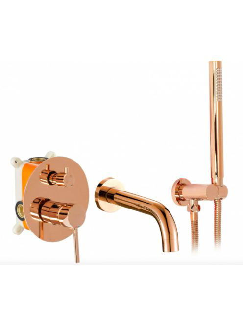 Rea Lungo rejtett fürdőkád csaptelep boxal és zuhanyszettel, fényes rózsa arany REA-B6930