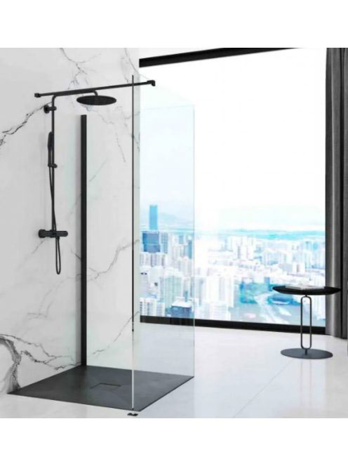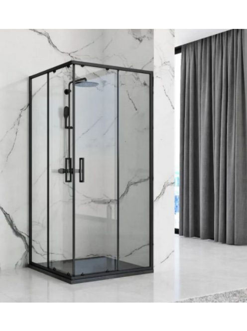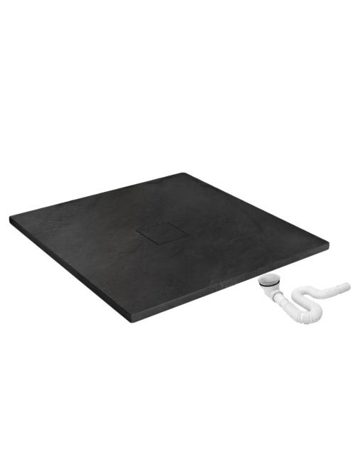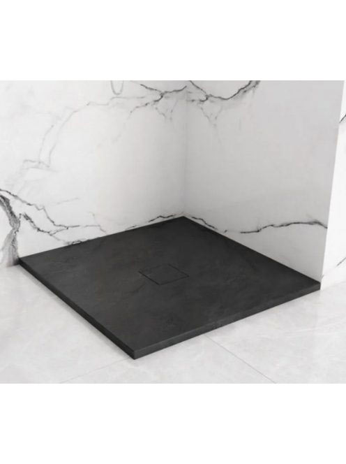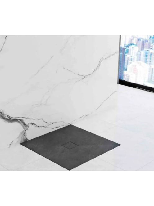 Rea Rock négyzet alakú ásványi akril zuhanytálca szifonnal 90x90 cm, fekete REA-K9601
