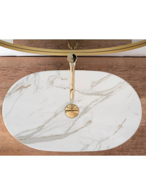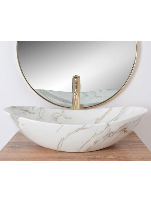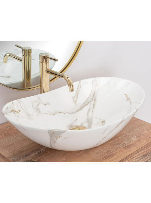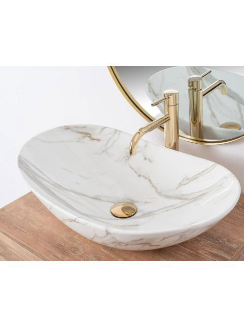 Rea Royal Aiax pultra tehető kerámia mosdótál 60,5x35 cm, fényes kőminta REA-U8548