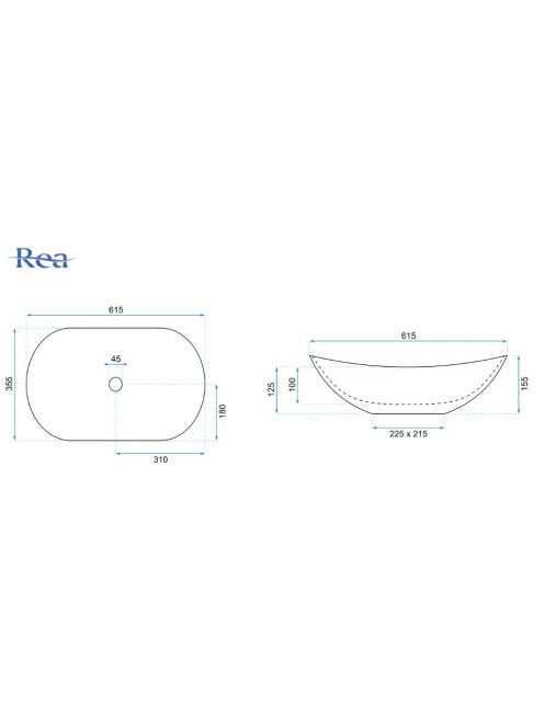 Rea Royal pultra tehető kerámia mosdótál 61,5x35,5 cm, fehér REA-U0441