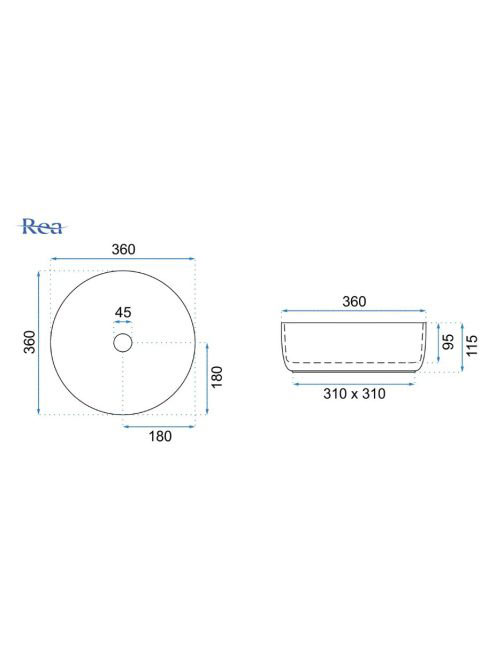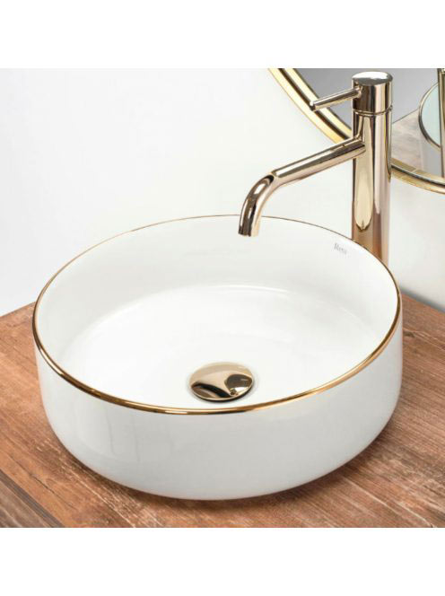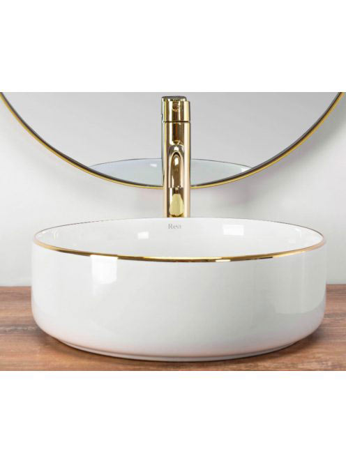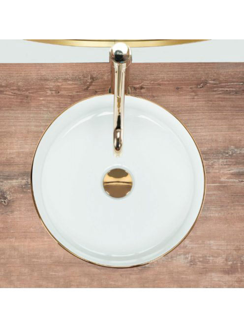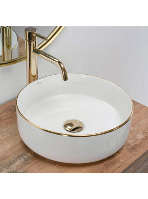Rea Sami pultra tehető kerámia mosdótál 36x36 cm, fehér/aran