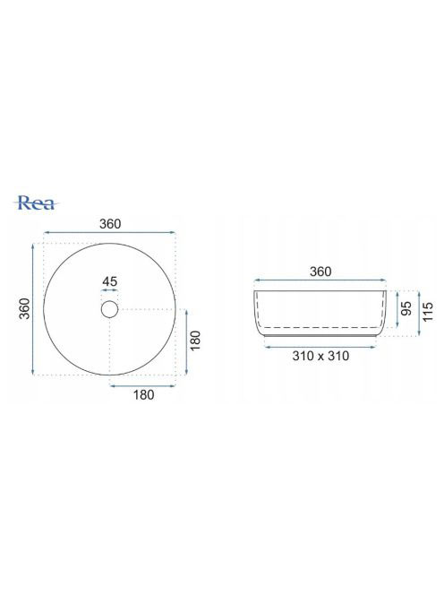 Rea Sami pultra tehető kerámia mosdótál 36x36 cm, fehér REA-