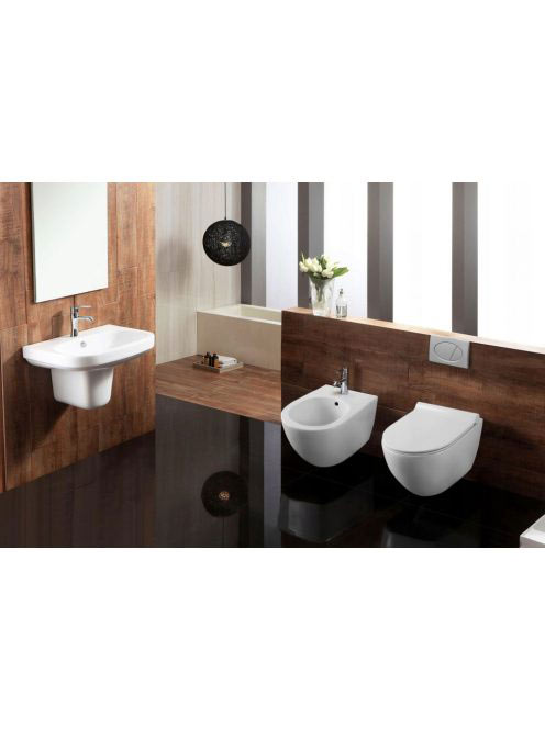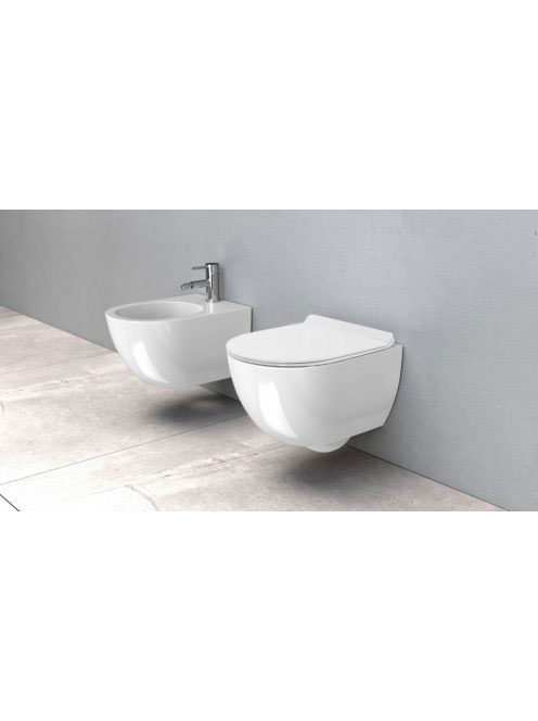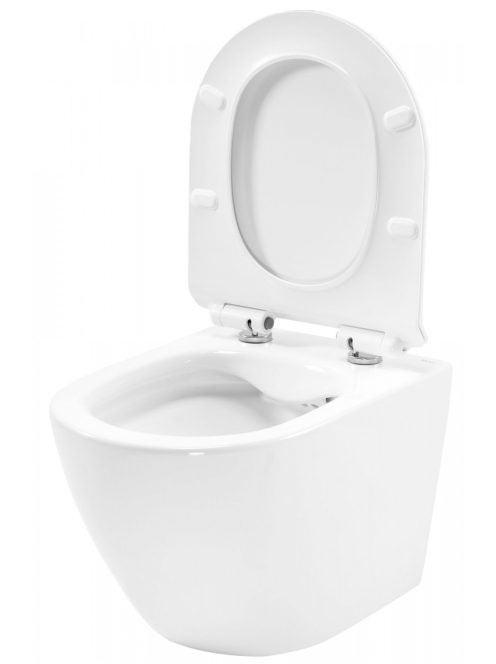 Rea Carter Rimless fali WC csésze 37x49 cm mélyöblítéssel, Duroplast ülőkével, fényes fehér REA-C1400