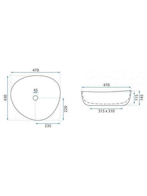 Rea Andrea pultra ültethető kerámia mosdótál 47x43 cm, fehér REA-U6333