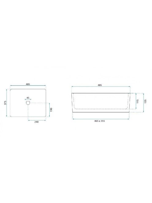 Rea Anita pultra ültethető kerámia mosdótál 48,5x37,5 cm, fe