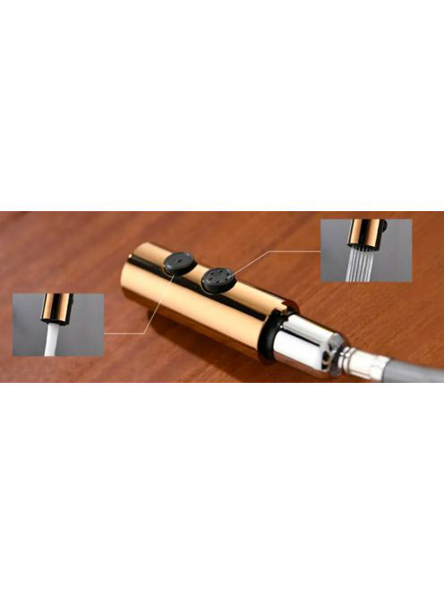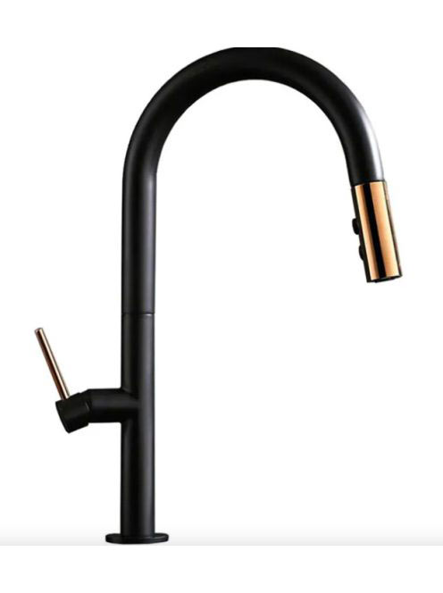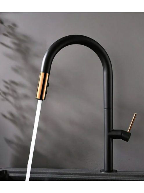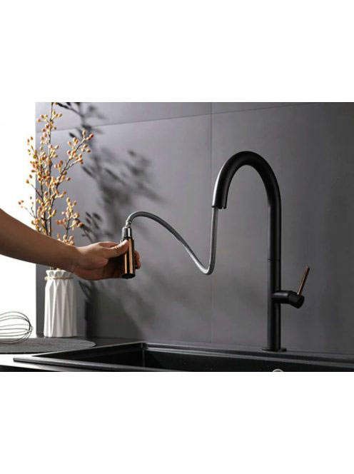 Rea Apollo álló konyhai csaptelep kihúzható zuhanyfejjel, fekete/rózsaarany REA-B9600