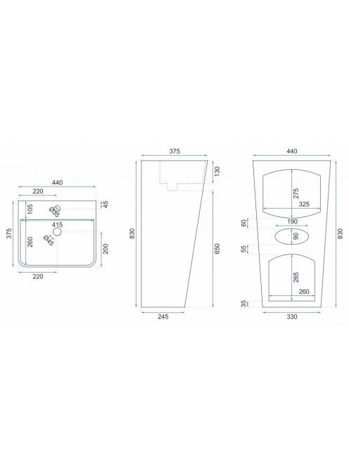 Rea Aris szabadon álló kerámia mosdó 83 cm, csaplyukkal és t