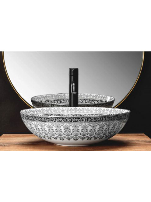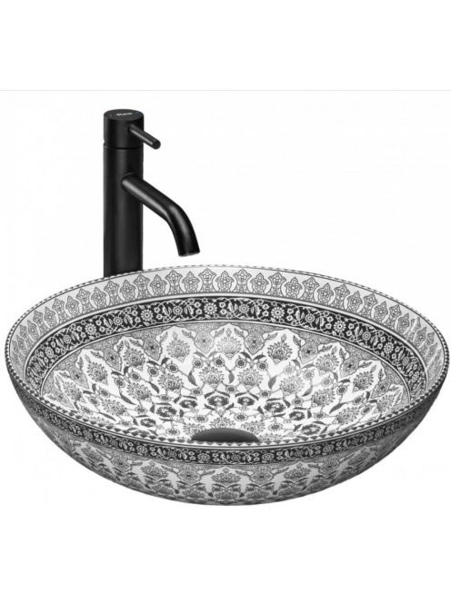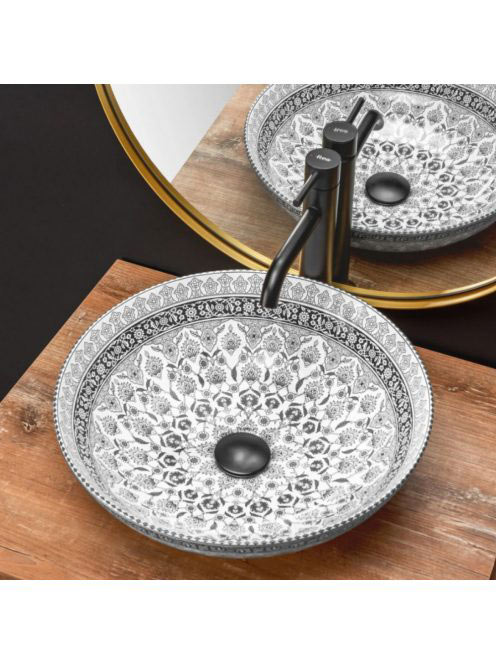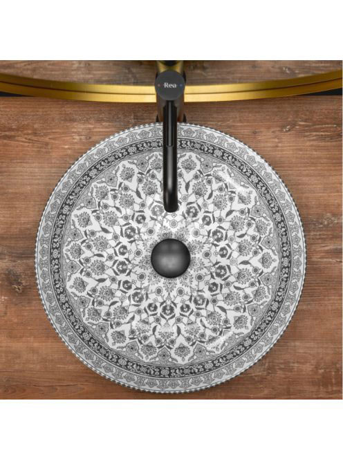 Rea Arte pultra ültethető kerámia mosdótál 40x40 cm, sötétszürke minta REA-U8002