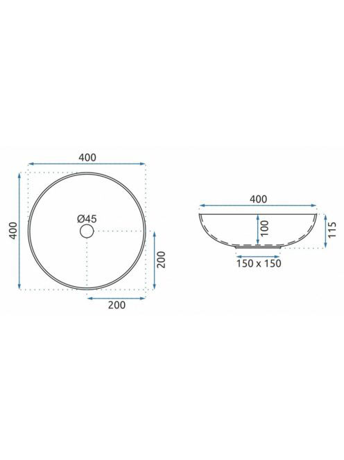 Rea Arte pultra ültethető kerámia mosdótál 40x40 cm, sötétszRea Arte pultra ültethető kerámia mosdótál 40x40 cm, sötétsz