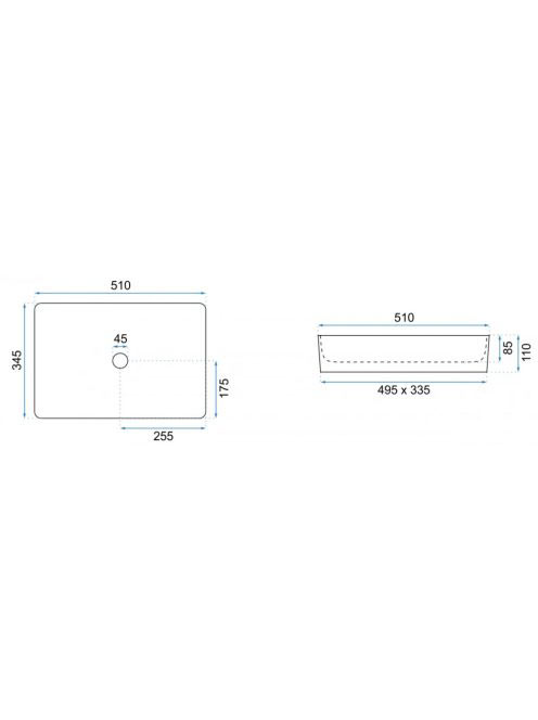 Rea Avia pultra ültethető kerámia mosdótál 51x34,5 cm, fehérRea Avia pultra ültethető kerámia mosdótál 51x34,5 cm, fehér