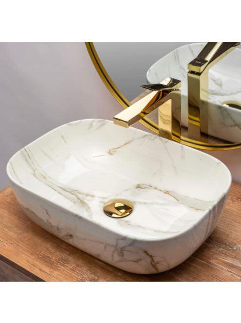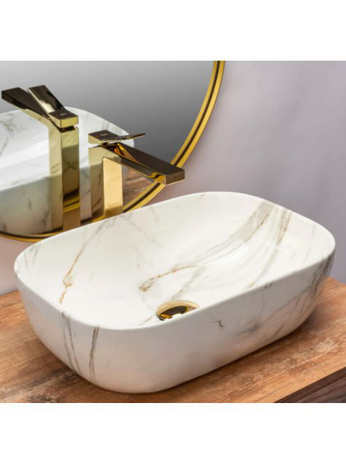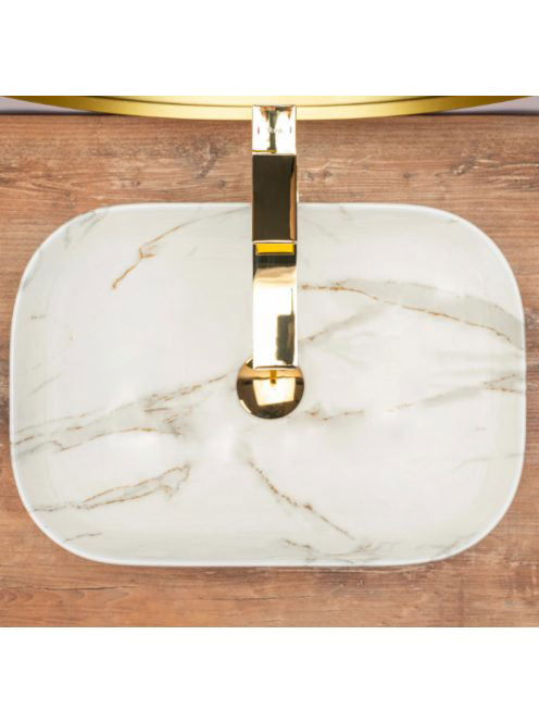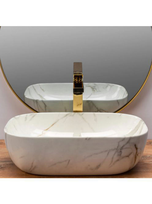 Rea Belinda Aiax pultra tehető kerámia mosdótál 46x32 cm, márvány minta REA-U6596
