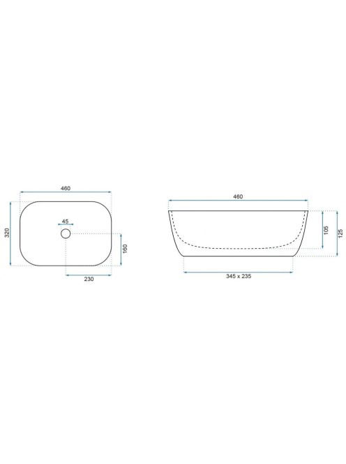 Rea Belinda Aiax pultra tehető kerámia mosdótál 46x32 cm, máRea Belinda Aiax pultra tehető kerámia mosdótál 46x32 cm, má