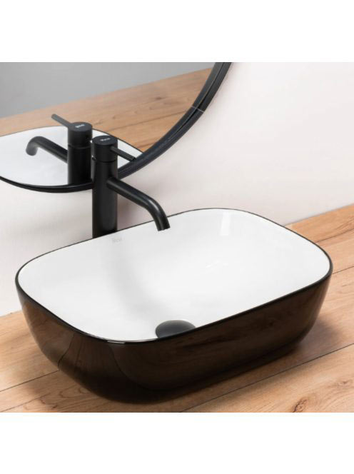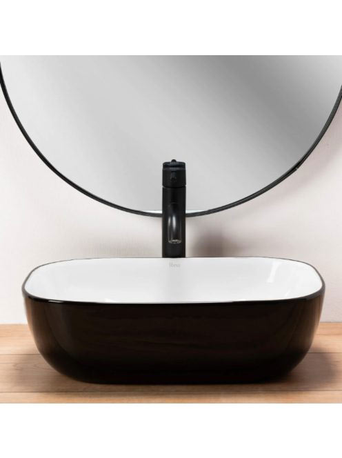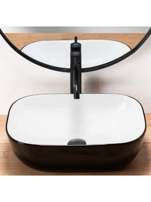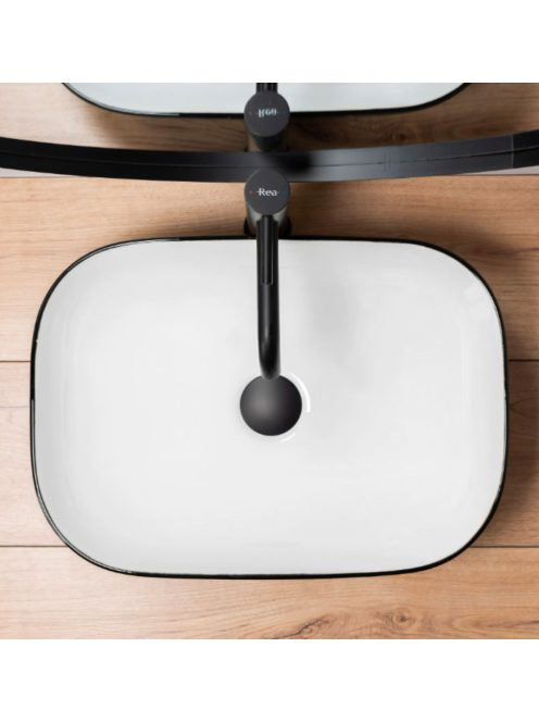 Rea Belinda pultra tehető kerámia mosdótál 46,5x33 cm, fehér/fekete REA-U6332
