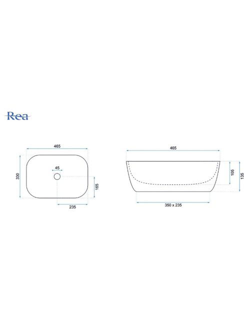 Rea Belinda pultra tehető kerámia mosdótál 46,5x33 cm, fehérRea Belinda pultra tehető kerámia mosdótál 46,5x33 cm, fehér