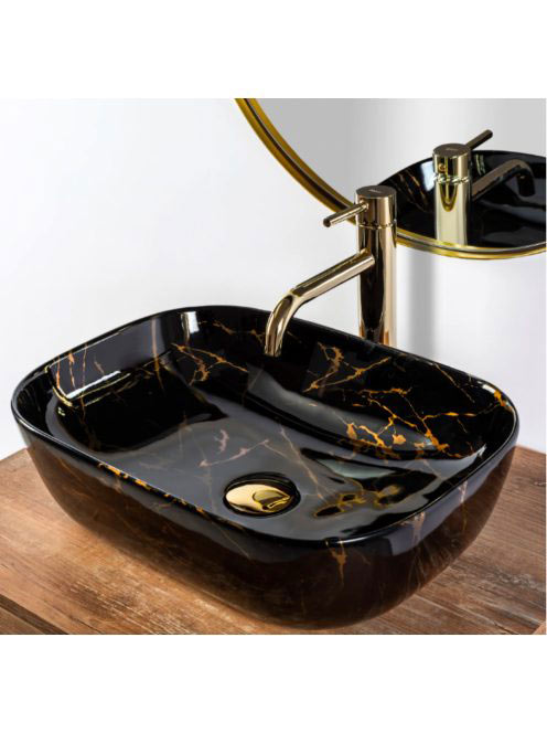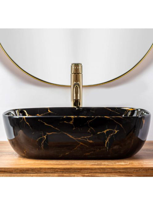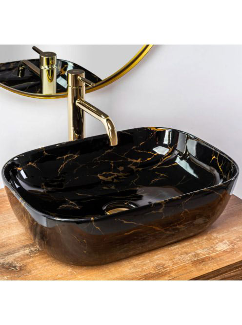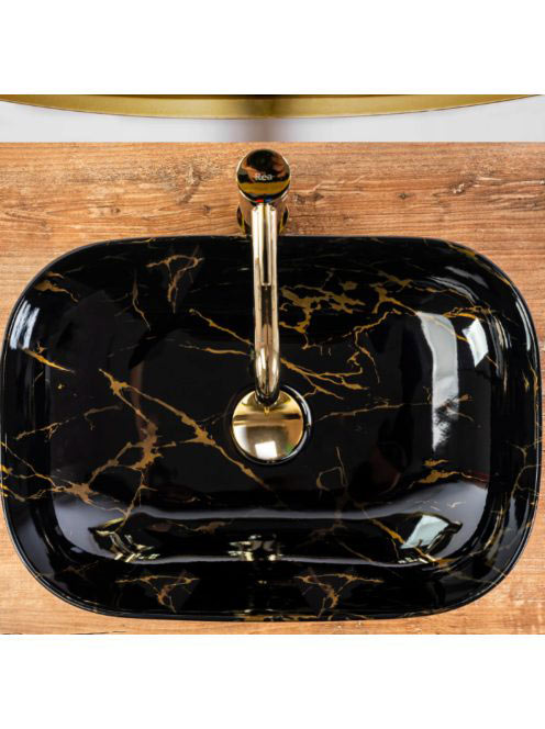 Rea Belinda pultra tehető kerámia mosdótál 46,5x33 cm, fényes fekete/arany REA-U8907