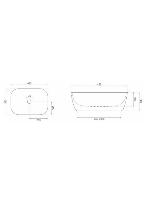 Rea Belinda pultra tehető kerámia mosdótál 46,5x33 cm, fényeRea Belinda pultra tehető kerámia mosdótál 46,5x33 cm, fénye