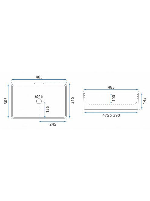Rea Berta pultra ültethető kerámia mosdótál 48,5x30,5 cm, feRea Berta pultra ültethető kerámia mosdótál 48,5x30,5 cm, fe