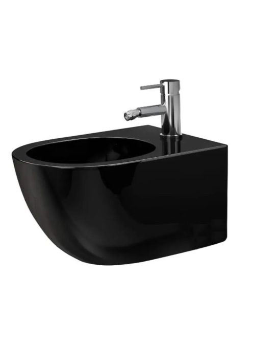 Rea Carlo Mini fali bidé 49x36,5 cm csapfurattal, fényes fekete REA-C6380