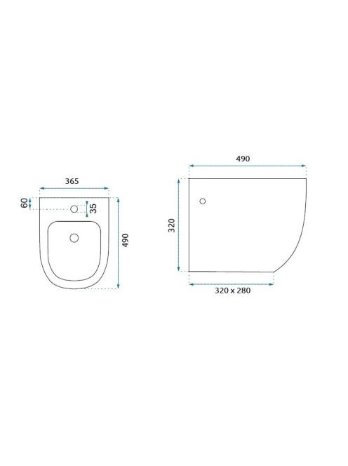 Rea Carlo Mini fali bidé 49x36,5 cm csapfurattal, fényes fekRea Carlo Mini fali bidé 49x36,5 cm csapfurattal, fényes fek