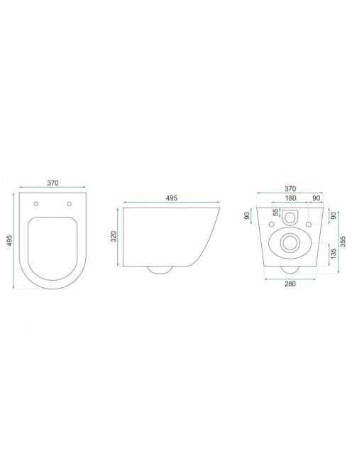 Rea Carlos perem nélküli fali WC csésze 37x49,5 cm mélyöblít
