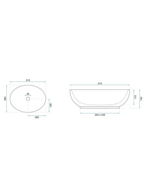 Rea Carola Slim pultra ültethető kerámia mosdótál 51,5x39 cm